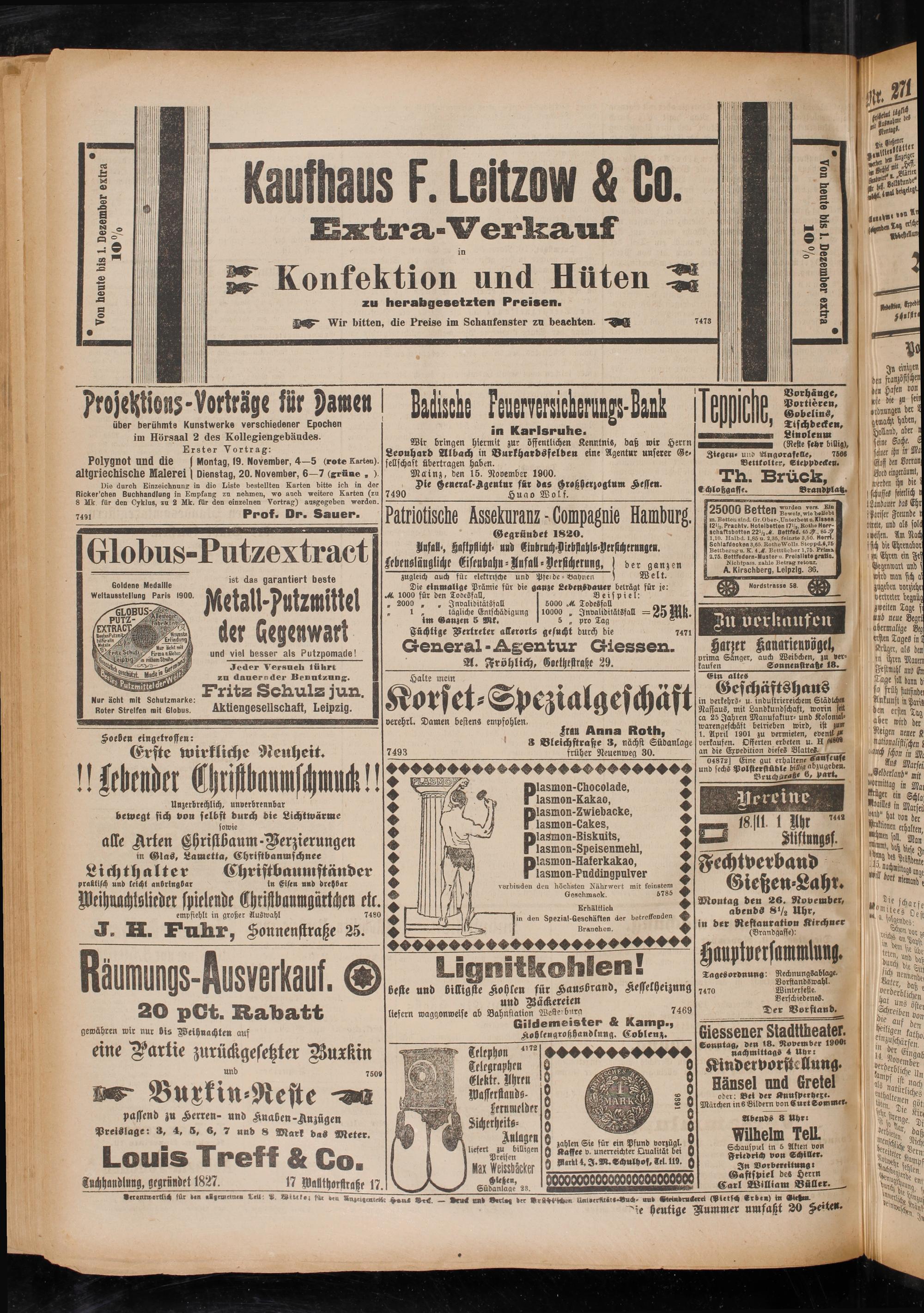 Giessener Stadttheater. Sonntag, den 18. November 1900t nachmittag- 4 Uhrr
