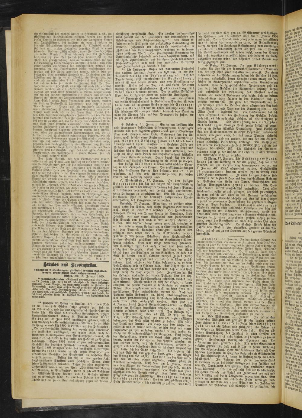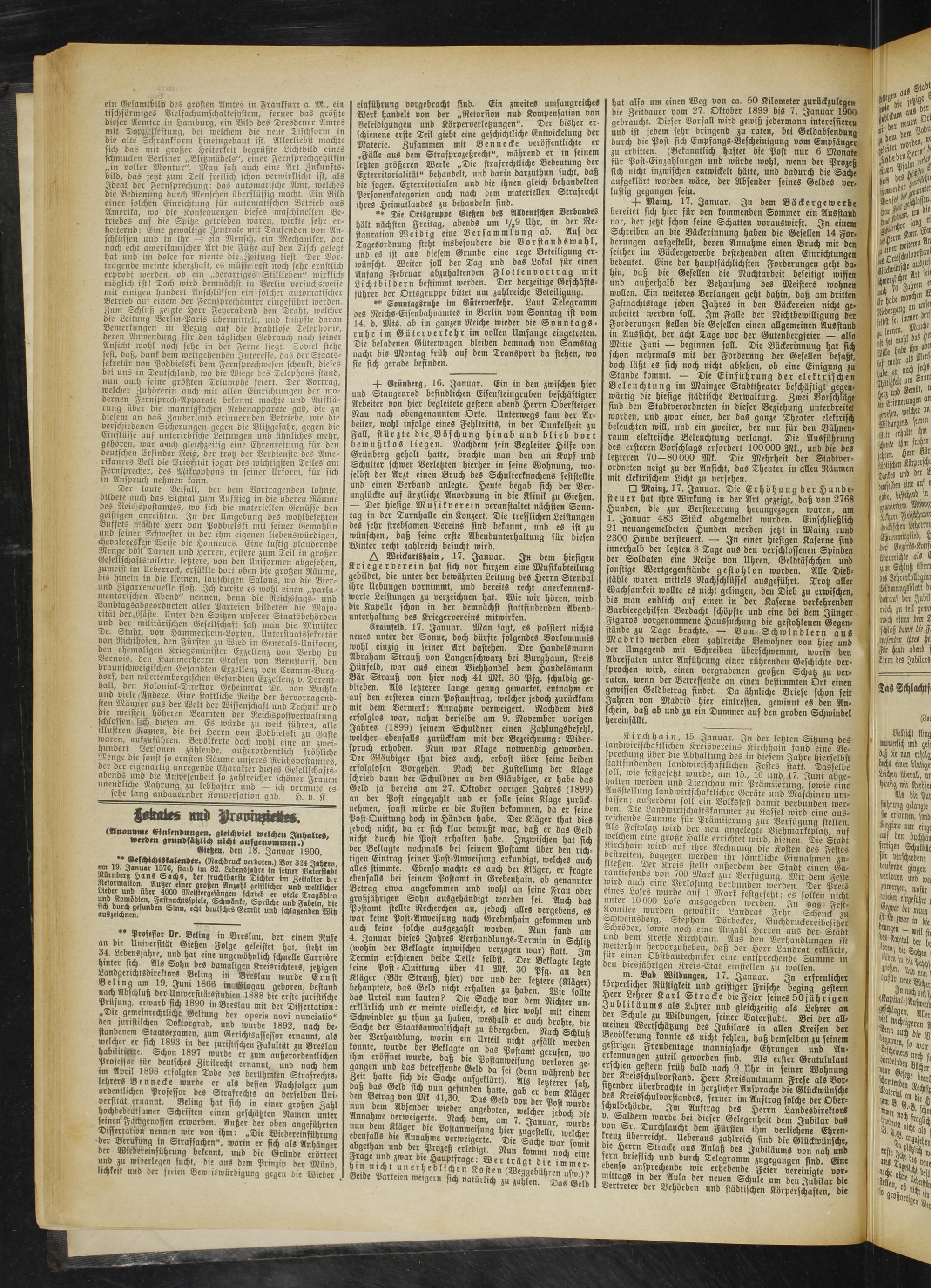 -p Grüuberg, 16. Januar. Ein in den zwischen hier ______.... ______0~ ——. VV|
