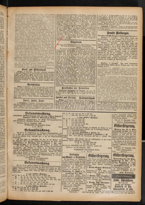 Zuschlagsfrist 14 Tage. Gießen, 17. September 1900.