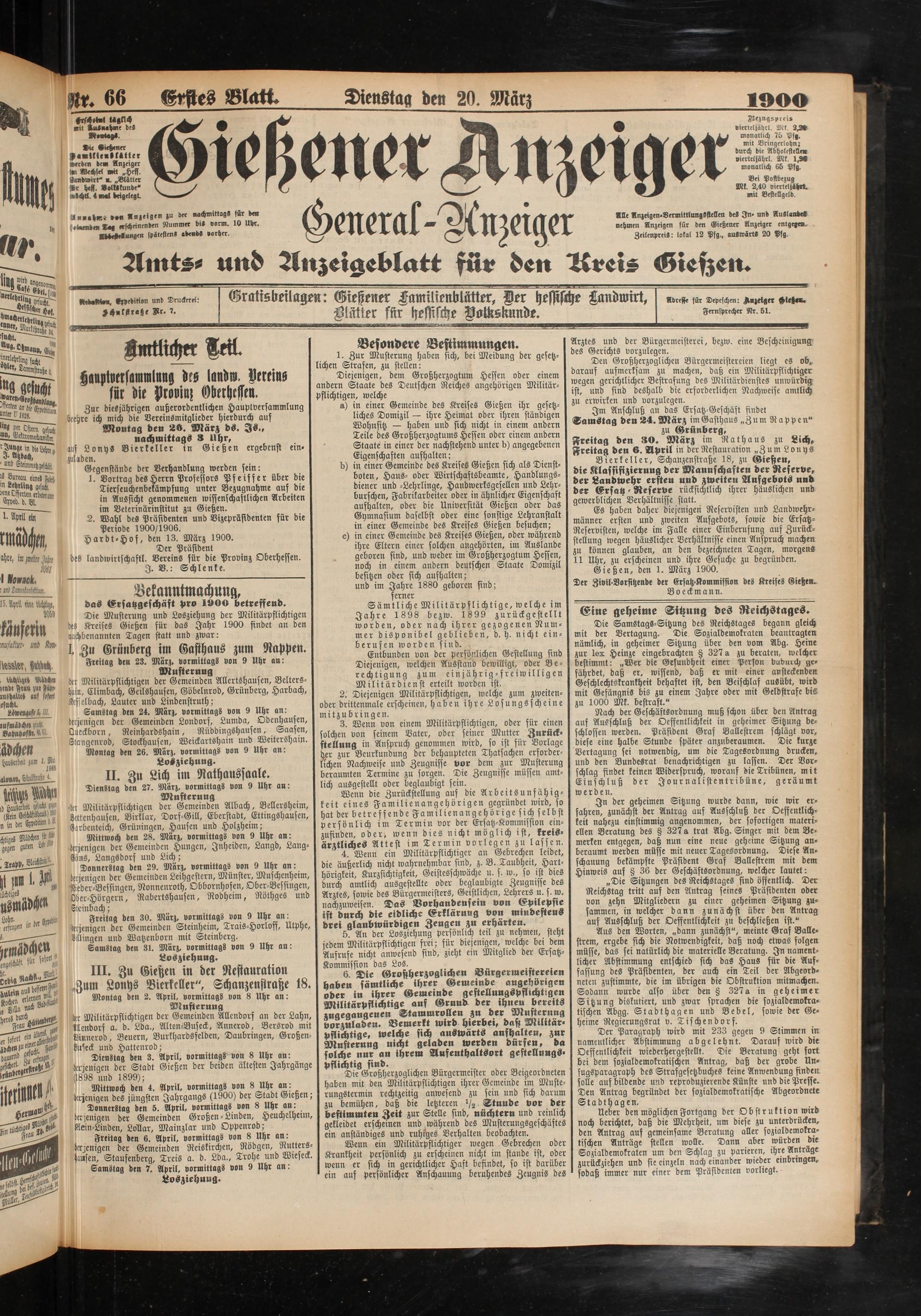 Nr. 66 Erstes Blatt._______Dienstag den 20. März