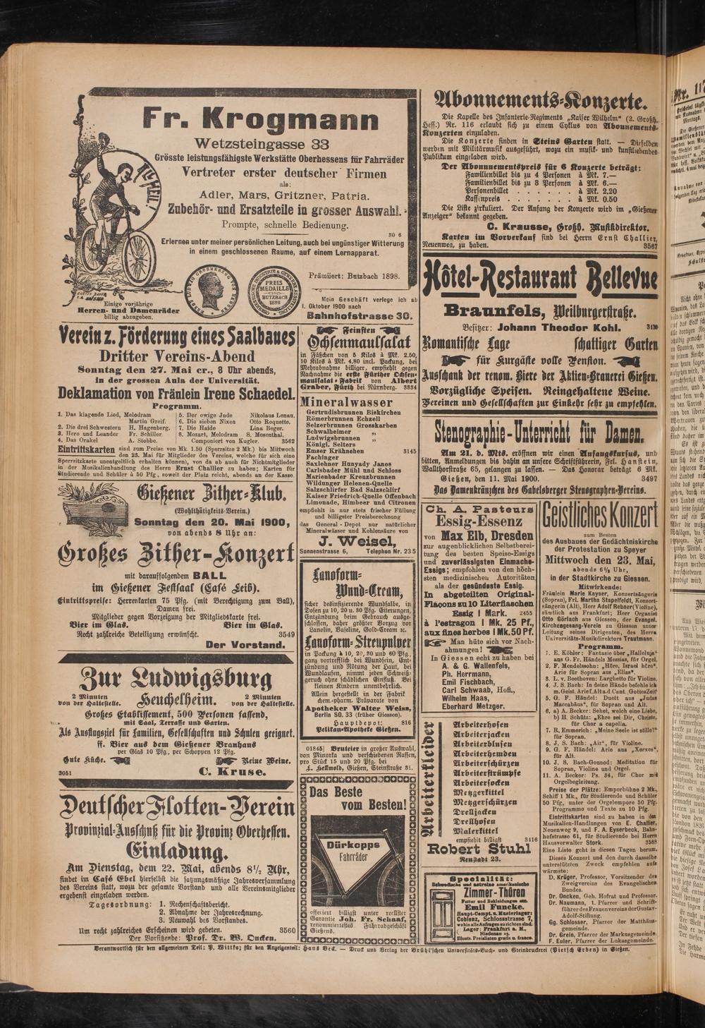 Verantwortlich für len ellgemeinm Teil: P. Wittko; für Itn Änjdgentefl; Han« Beck. — Druck und Verlag der Brühl'schen UniverstlülS-Buch. und Steindruckerei (Pietsch Erben) in Gießen.