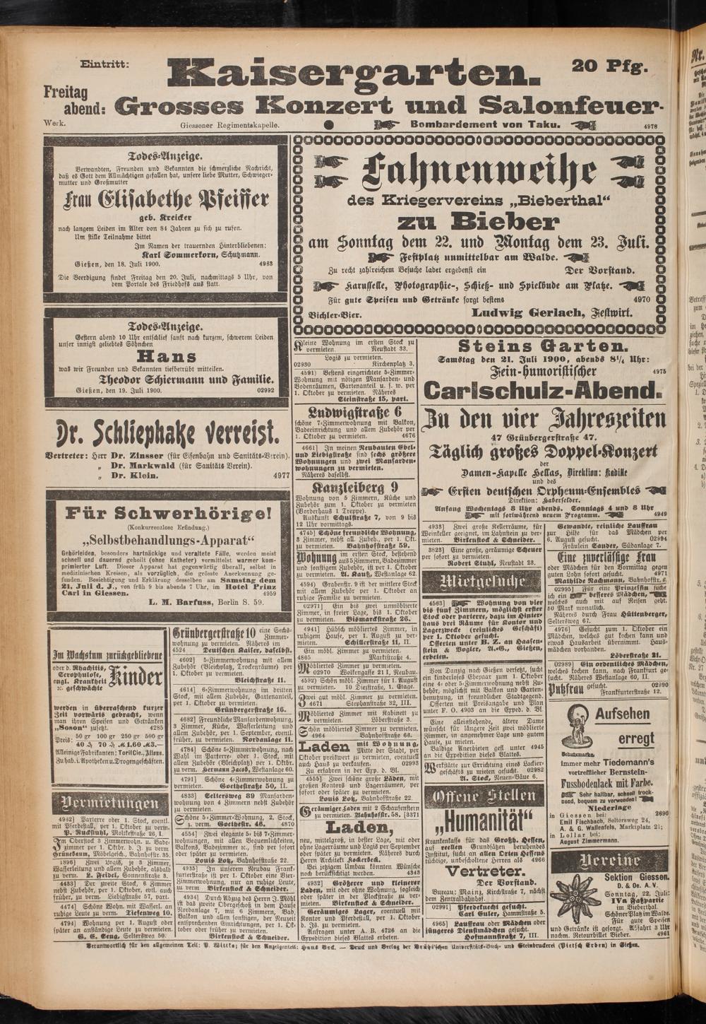 Gießen, den 19. Juli 1900.