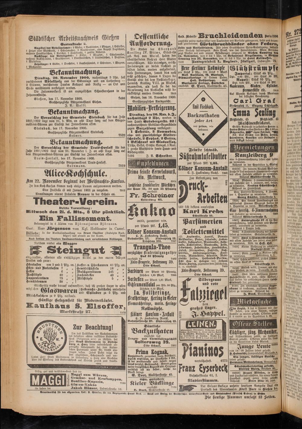 Gießen, den 17. November 1900.