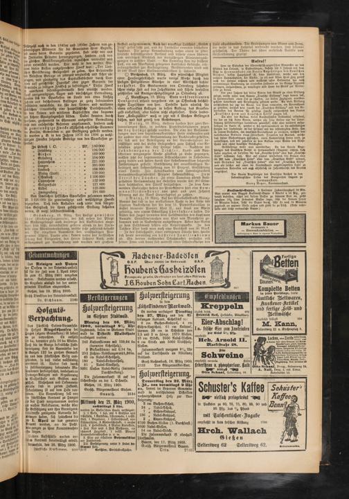 Montag de« 26. März 1900, vormittags 9l/t Uhr beginnend, sollen im Gießener Stadt wald im Distrikt Waldshute versteigert werden: