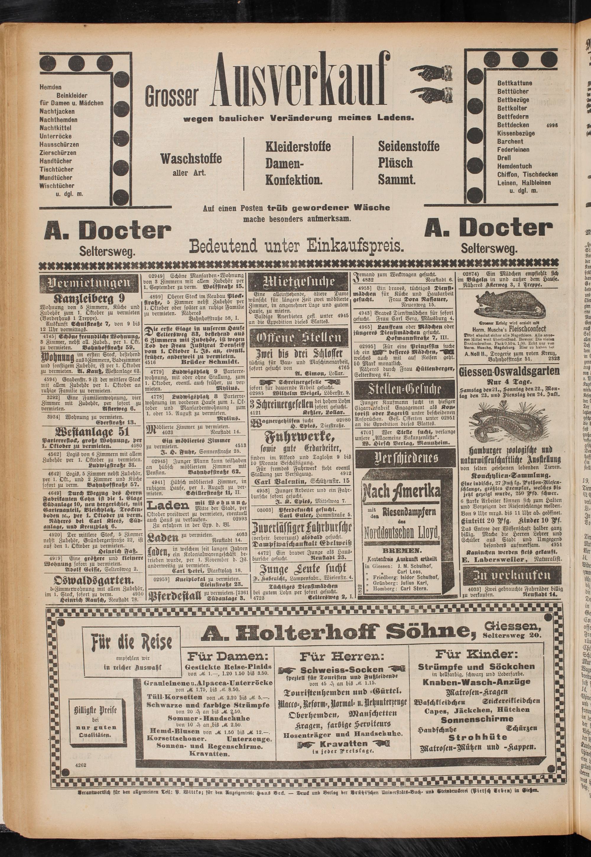 4920] Der mittlere Stock, 5 Zimmer nebst Zubehör, Grünbergerstraße 22, ist auf den 1. Oktober zu vermieten. ___________________Heinrich Fatz.