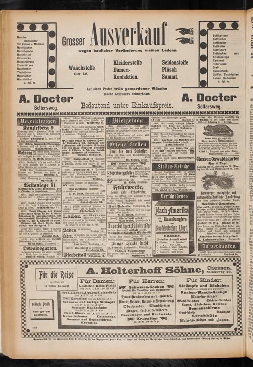 <^ie erste Etage in unserem Hause & SelterSweg 83, bestehend aus 6 Zimmern mit Zubehör, ist wegen Tod der Frau Justizrat Dornseiff vom 1. Oktober l. Js. an, eventl. rüher, anderweit zu vermieten.