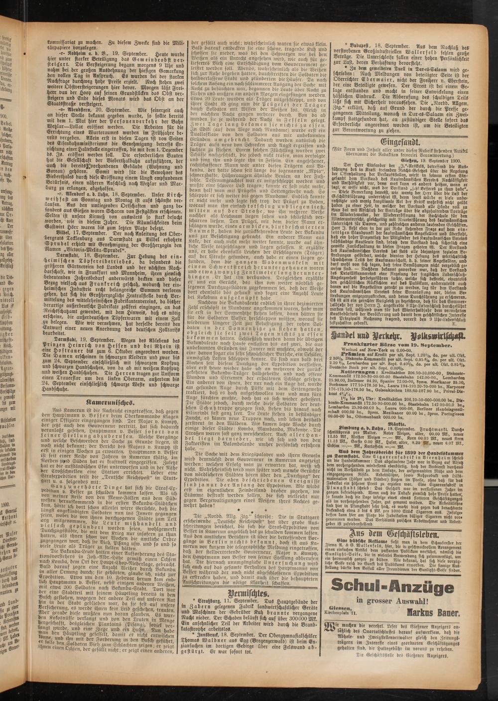 I Prämiea auf Kredit per ult. Sept. 1.20hg, do. per ult. Okt. I 2 30%, Diekonto-Kommandit per ult, Sept 0.95 %, do. per ult Okt. I 2.20 %, Lombarden per ult Sept. 0.40%, do. per ult. Okt. 0.85 %. I Deutsche Bank per ult. Sept. 0.00%.