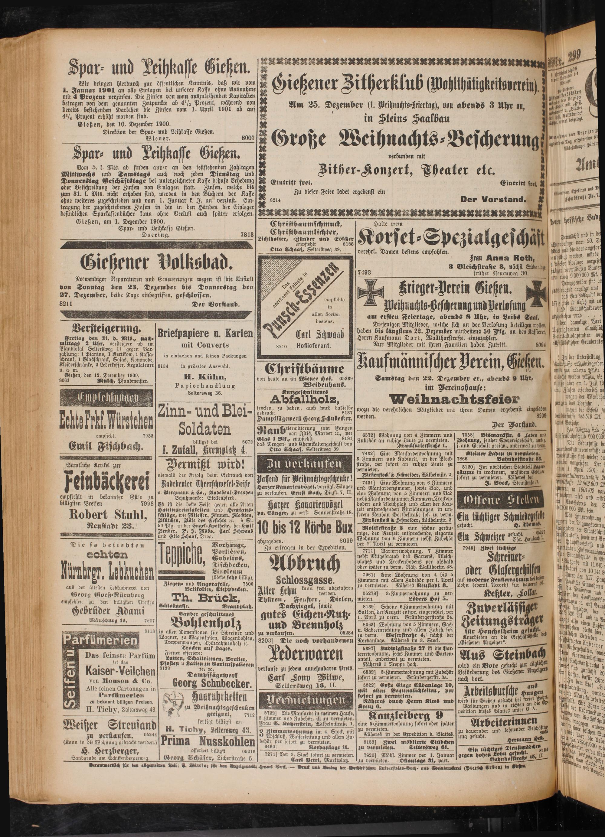 Samstag den 22. Dezember er., abends 9 Uhr,