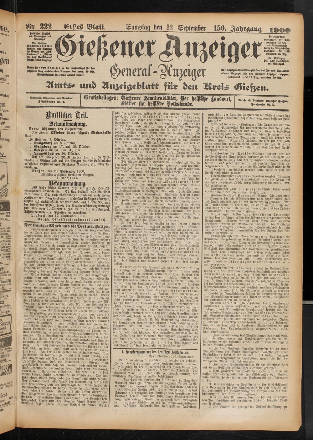 Auf den Gießener Markt finden die für die Vieh. Erkte in Gießen und auf die übrigen die für Lokalmärkte erlassenen Bestimmungen (Gießener Anzeiger Nr. 134) Anwendung.