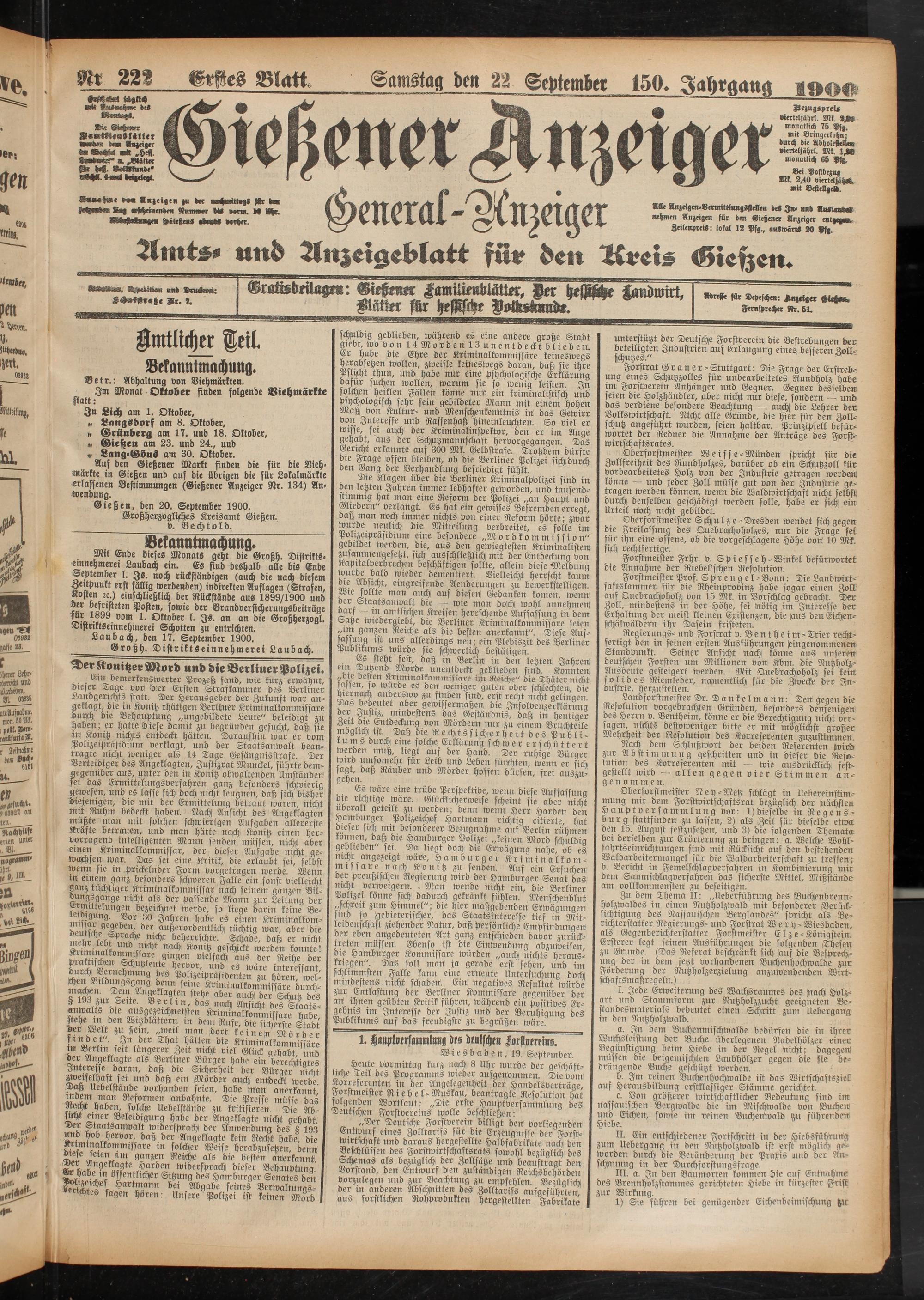 Sfie Snzeigen-BermittlmigSstell«« des I«. ««d aehmen Auzeigen für den Gießener Anzeiger cntj^e, Zeilenpreis: lokal 12 Pfg., auswärts 20 Pjß.
