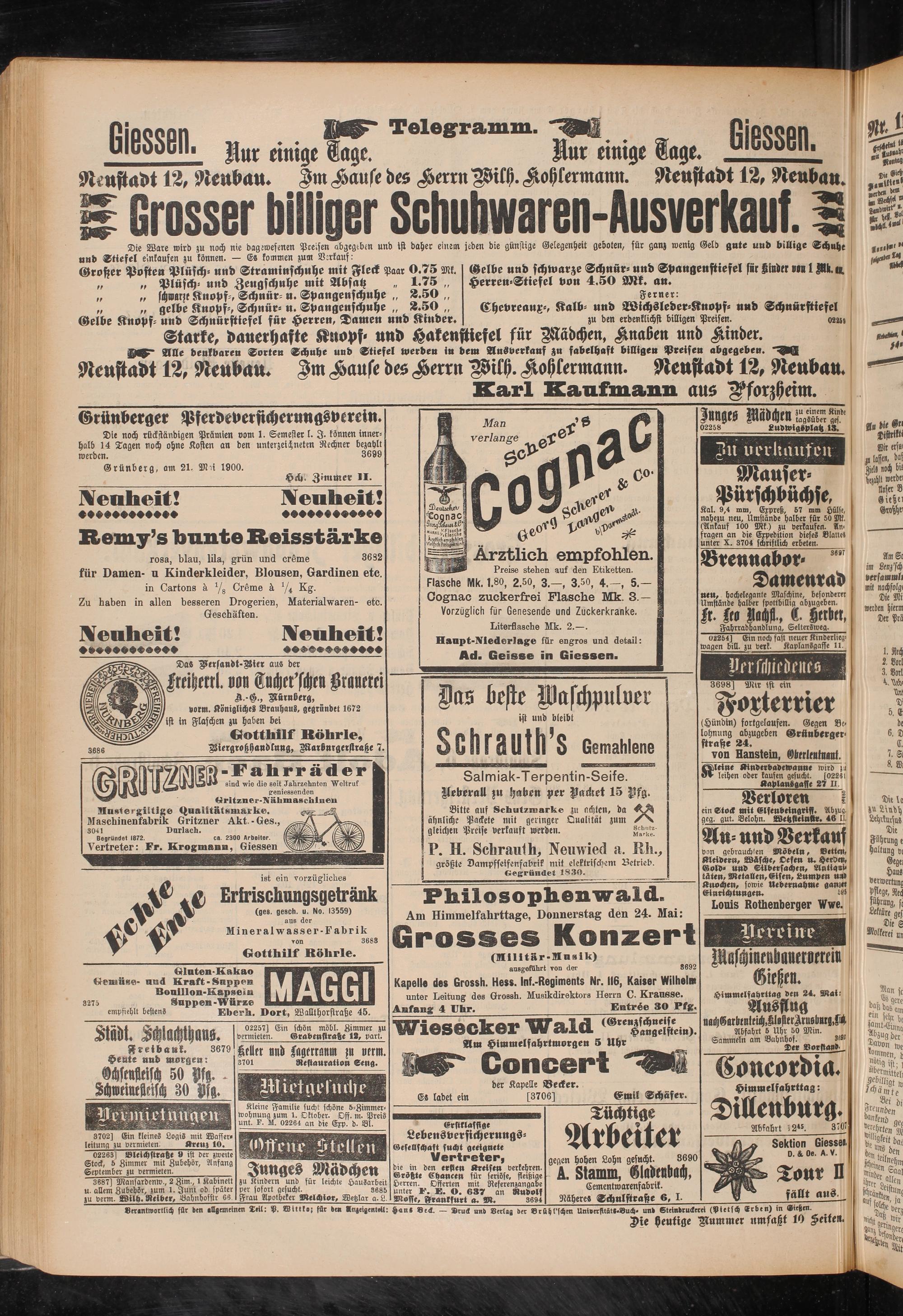 Grünberg, am 21, Mü 1900.