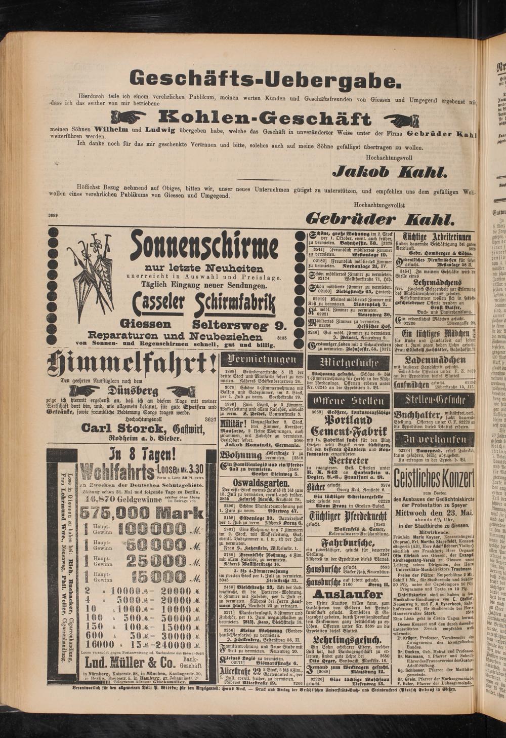ver«ntwort!,ch für dm eBgemeinm teil: P. Wittkor für dm «nzeigntteN: <penl ®e4. — Druck und «erlag der vrühl'schm Uai»erfität«.Buch. und Eteindruckerei (Pietsch erben) in Gießen.