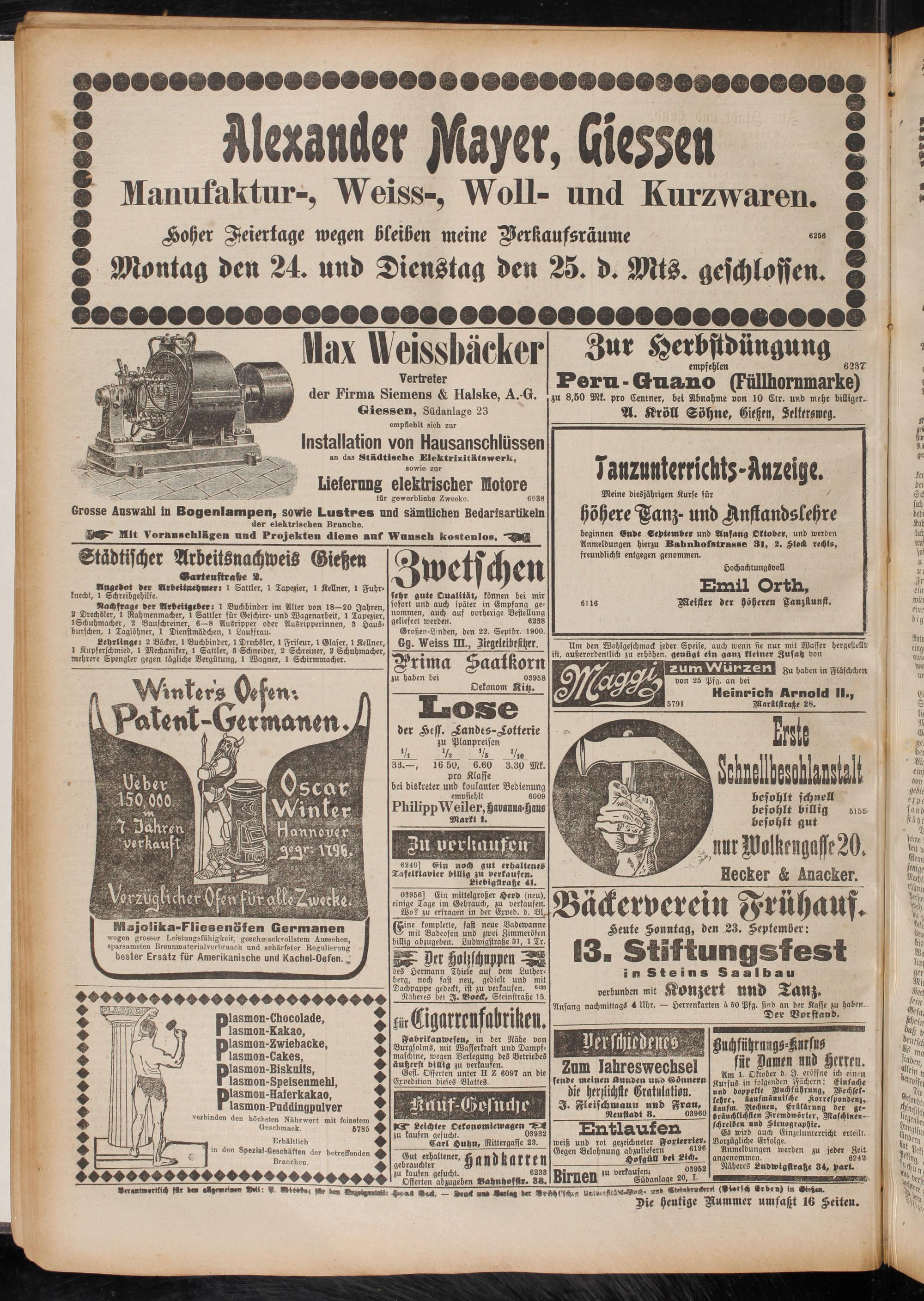 Großen-Lmden, den 22. Septbr. 1900.