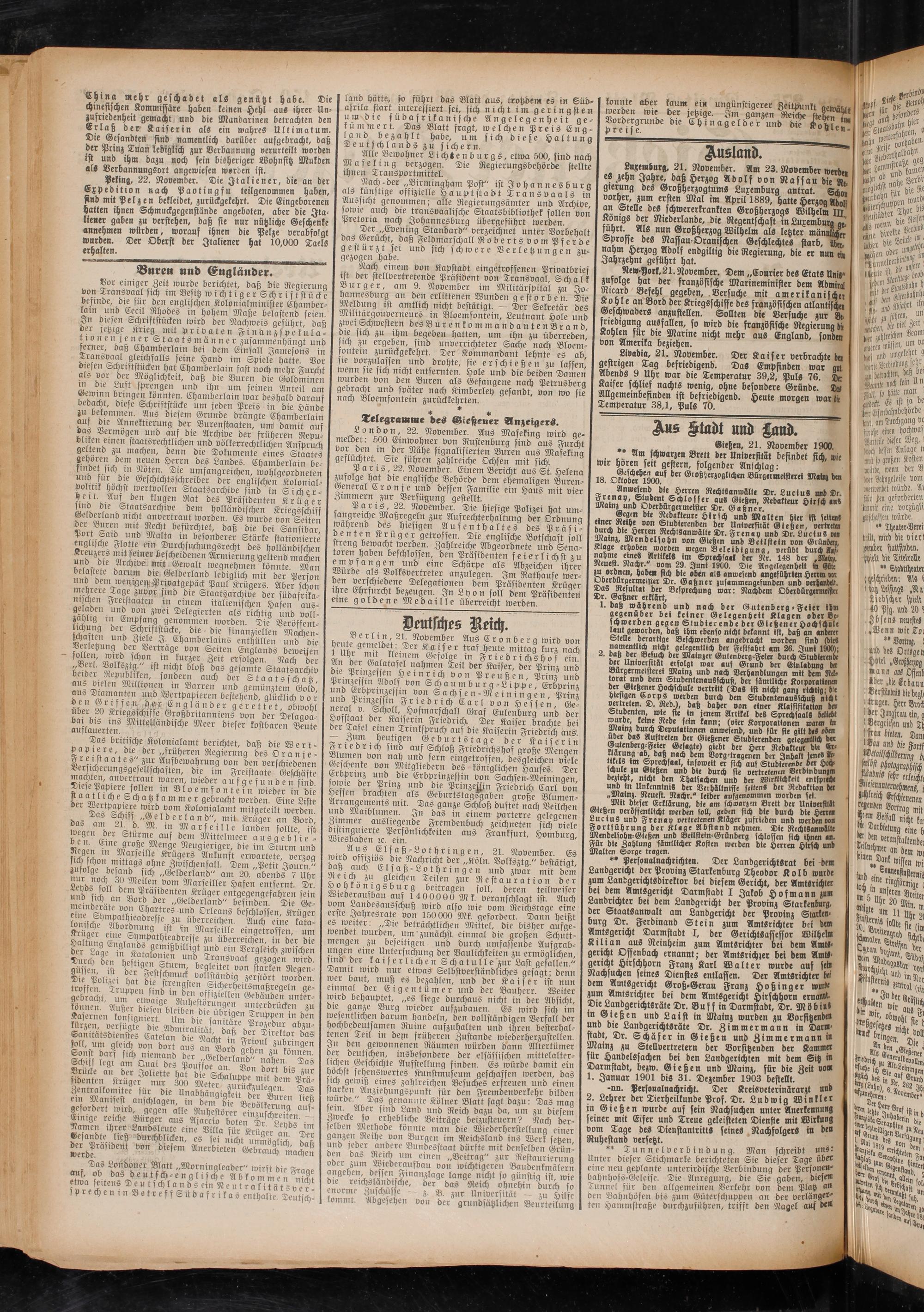 Berlin, 21. November Aus Cronberq wird von 1^^Übr9emitIhHp-^er Kaiser traf heute mittag kurz nach arJ ^rfIentem Gefolge in Friedrichsh 0 f ein W der Galatafel nahmen Teil der Kaiser, der Prinz und die Prinzessen Heinrich von Preußen Prinz und rc t!n.-^boy. von Schaumburg-Lippe, Erbprinz und Erbpnnzessin von Sachsen-Meiningen Prinz und Prinzessin Friedrich Carl von Hessen Sm?; ^^ cHoswarschall Graf Eulenburg und der hPr T?fprbC-r ^Äbrrn Friedrich. Der Kaiser brachte bei der Tafel emen Trinkspruch auf die Kaiserin Friedrich aus o. Iwm heutigen Geburtstage der Kaiserin! Blumen^non «Ä ““s Schloß Friedrichshof große Mengen I » üon n?Ä.unb fern eingetroffen, desgleichen viele |