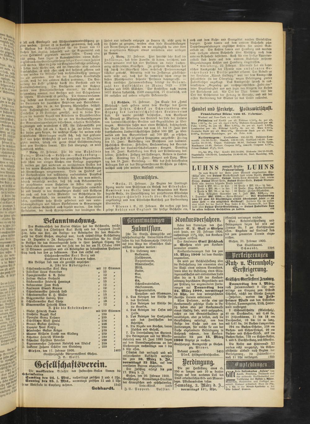 Der Kaufmann Emil Fischbach zu Gießen wird zum Konkurs- vermalter ernannt.