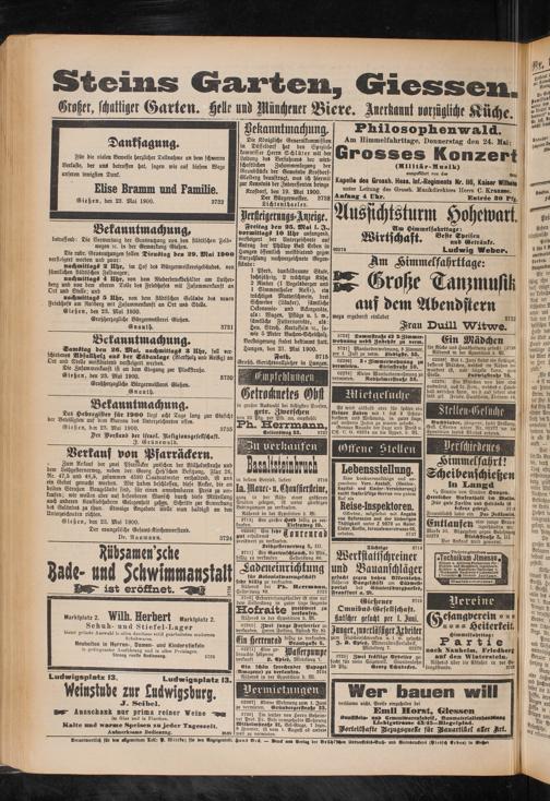 Die rubr. Grasnutzungen sollen Dienstag den SS. Mai 1900 versteigert werden und zwar: