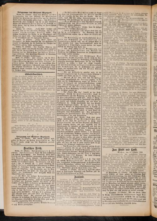 Berlin, 22. Oktober. Aus Homburg v. d. H. wird gemeldet: Das Kaiserpaar begab sich heute nachmittag nach Schloß Friedrichshof. Der Kronprinz, Prinz Eitel Friedrich und Prinz Adalbert unternahmen heute vormittag einen Spazierritt. Baron Riedesel, Oberftallmeister des Großherzogs von Hessen, überbrachte der Kaiserin die Glückwünsche des Darmstädter Hofes. Der Kronprinz reist heute abend 8 Uhr 10 Minuten ab. — Heute vormittag em.