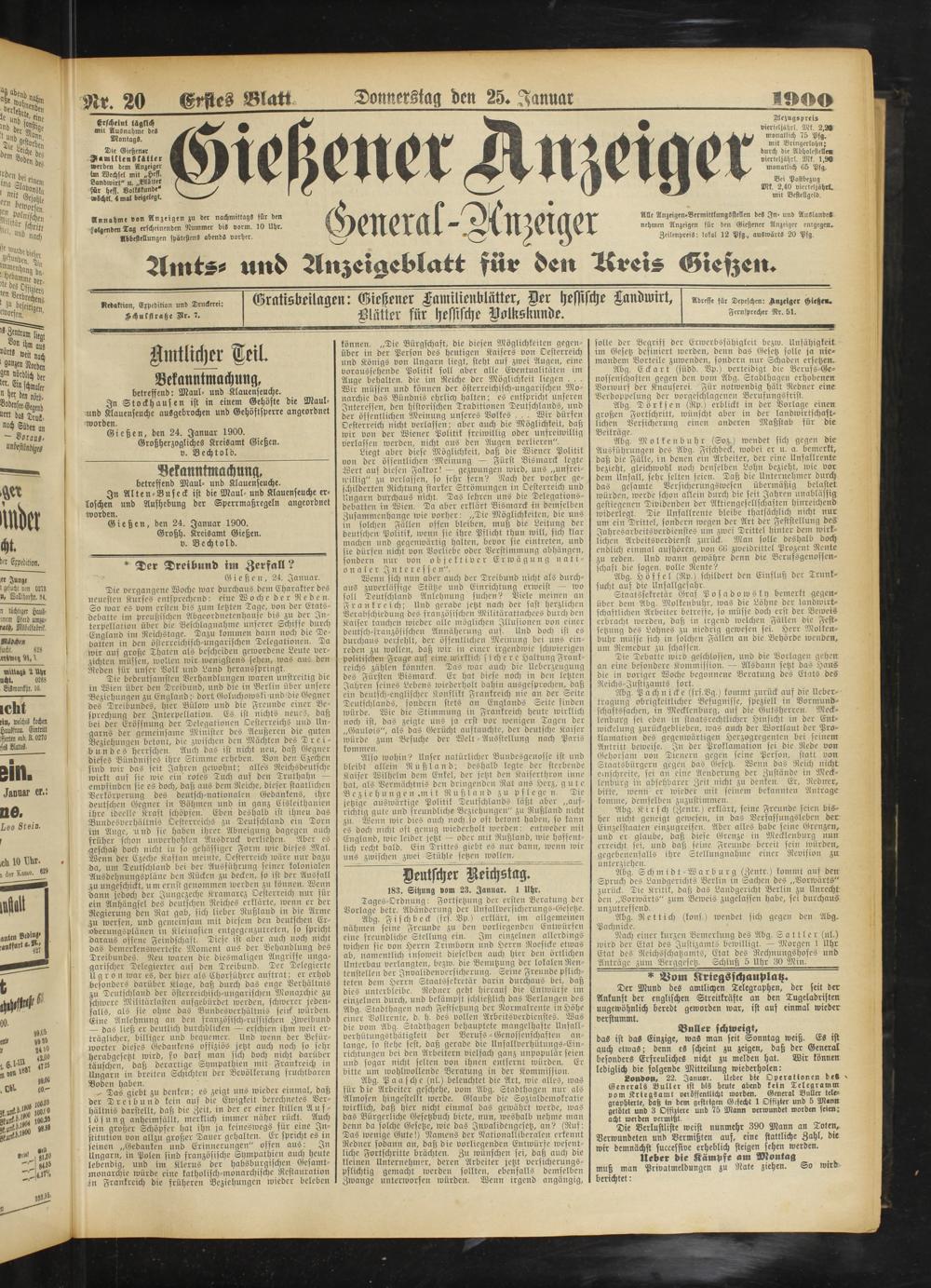 Nr. 20 Erstes Blatt Donnerstag den 25. Januar
