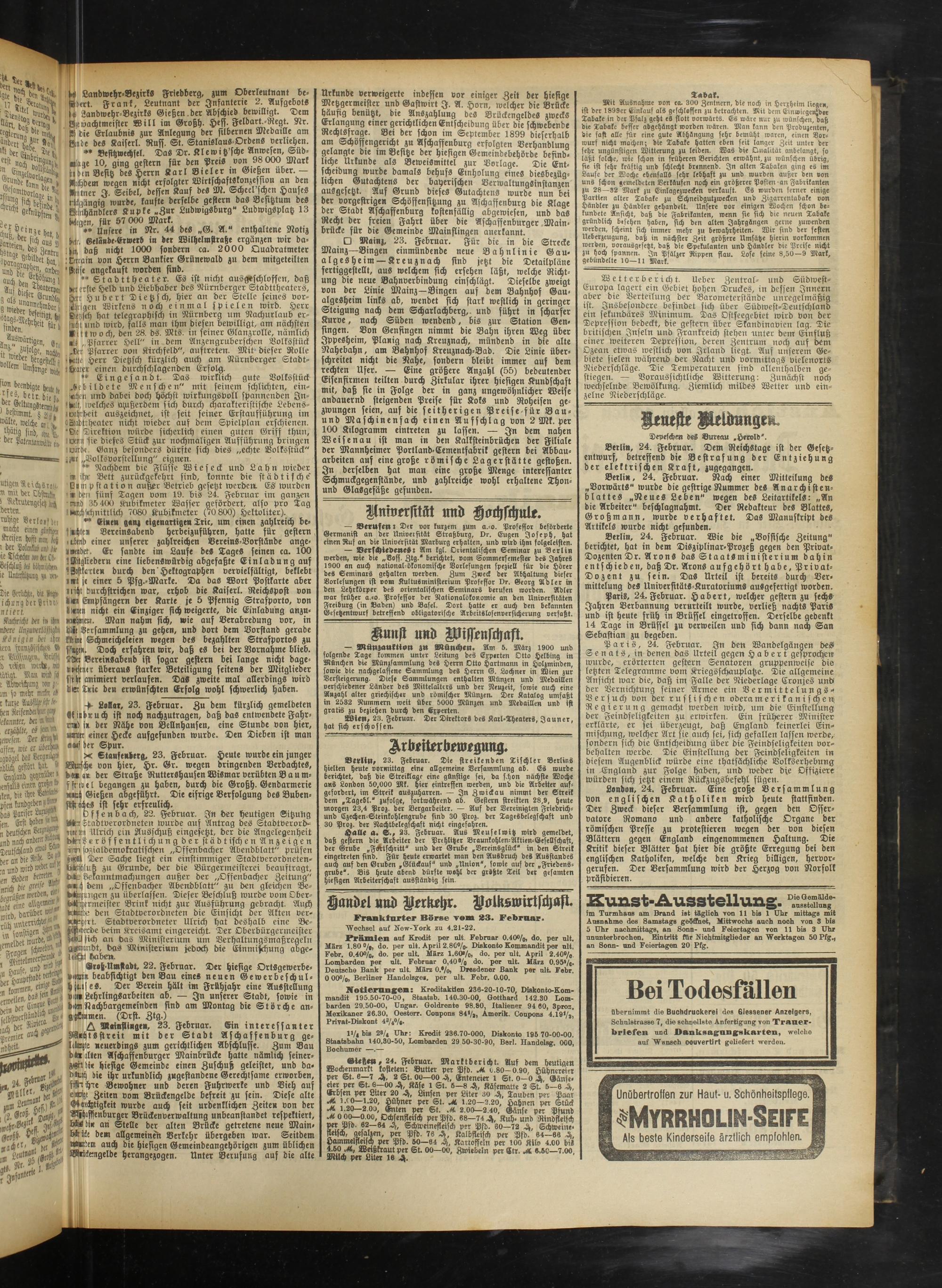 Berlin, 24. Februar. Nach einer Mitteilung des „Vorwärts" wurde die gestrige Nummer des Anarchistenblattes „Neues Leben" wegen des Leitartikels: „An die Arbeiter" beschlagnahmt. Der Redakteur des Blattes, Großmann, wurde verhaftet. Das Manuskript des Artikels wurde nicht gefunden.
