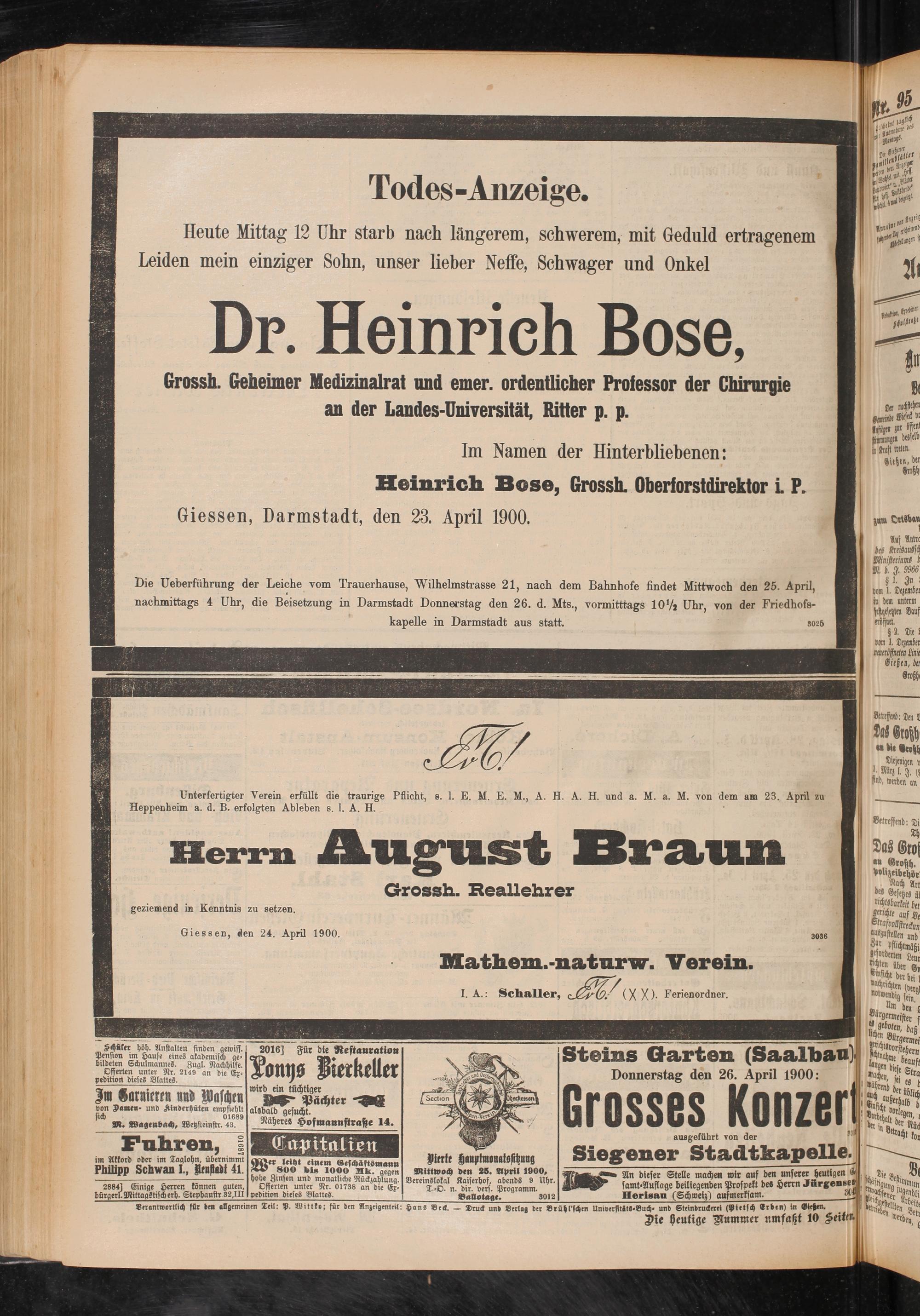 Giessen, Darmstadt, den 23. April 1900.