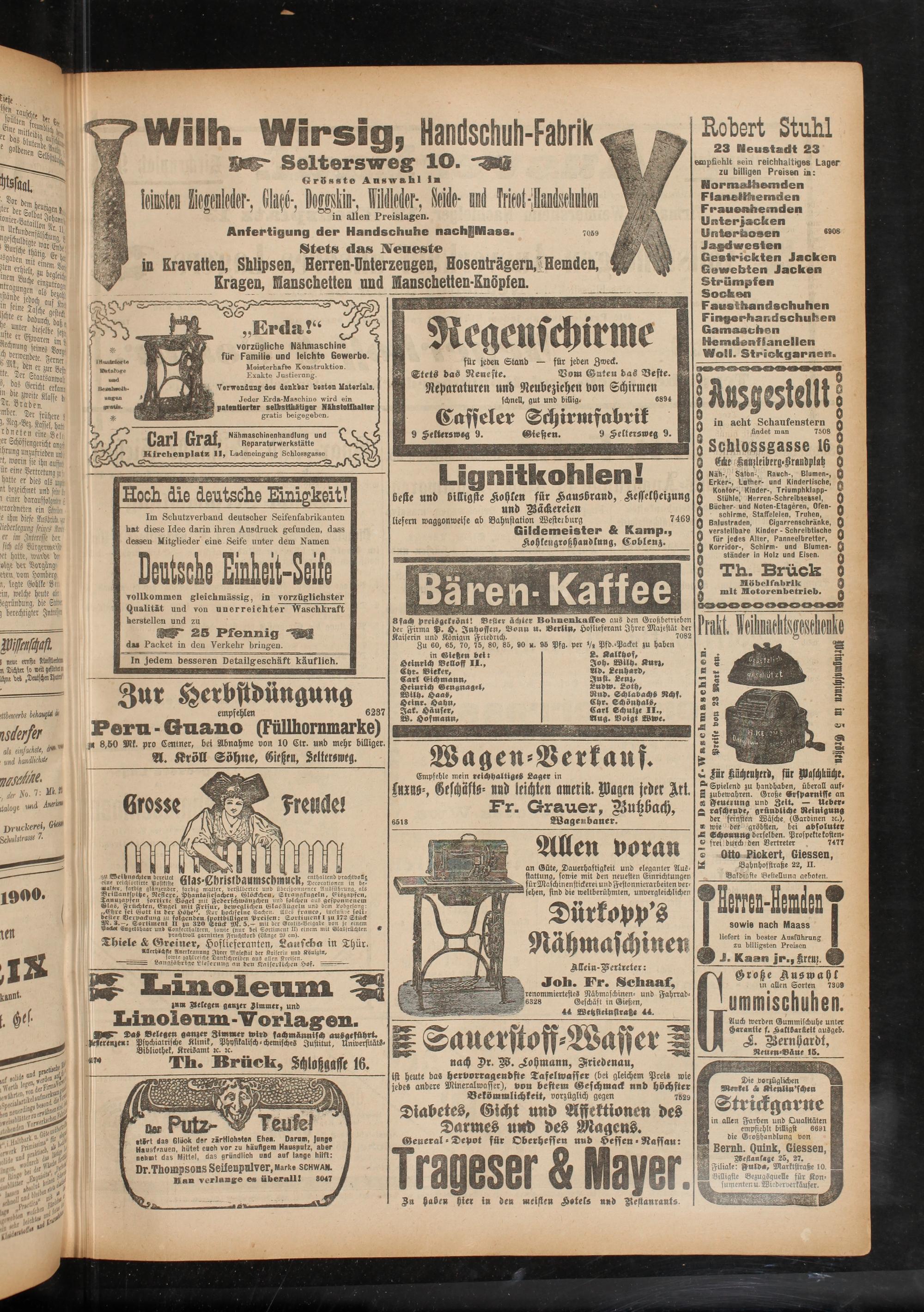 Job. Fr. Schaaf, renommiertestes Nähmaschinen- und Fahrrad- 6328 Geschäft in Gießen,