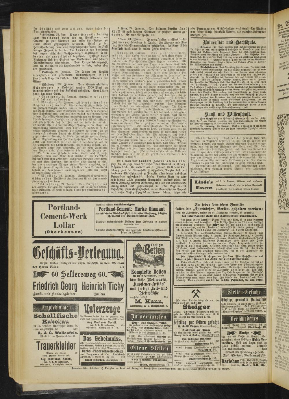 # Karlsruhe, 24. Januar. Die Frau des kürzlich verunglückten und gestorbenen Kammersängers Plank starb nach längerem Leiden. Acht Kinder betrauern die Eltern.