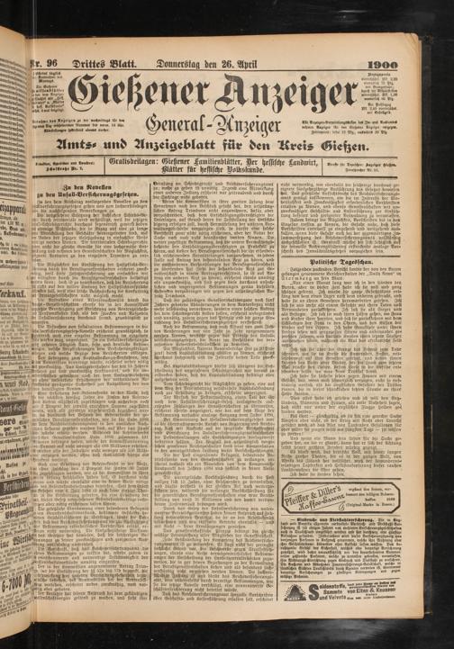Gratisbeilagen: Gießener Familienblätter, Der hessische Landwirt, Mütter für hessische Dolbskunde.