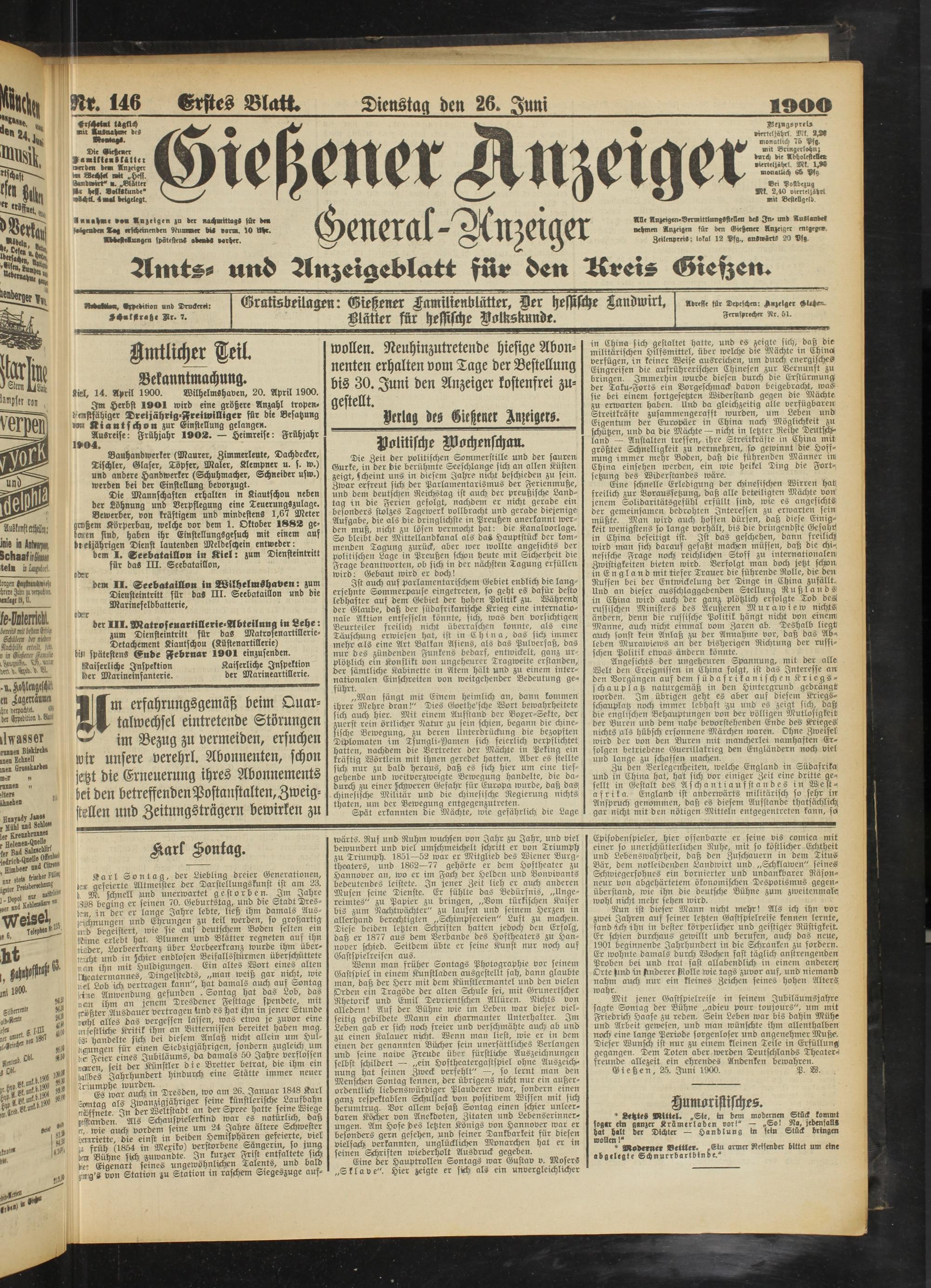 Ist auch auf parlamentarischem Gebiet endlich die langersehnte Sommerpause eingetreten, so geht es dafür desto lebhafter auf dem Gebiet der hohen Politik zu. Währens der Glaube, daß der südafrikanische Krieg eine internationale Aktion entfesseln könnte, sich, was den vorsichtigen^ Beurteiler freilich nicht überraschen konnte, als eine Täuschung erwiesen hat, ist in China, das sich immer mehr als eine Art Balkan Asiens, als das Pulverfaß, das nur des zündenden Funkens bedarf, entwickelt, ganz urplötzlich em Konflikt von ungeheurer Tragweite erstanden, der sämtliche Kabinette in Atem hält und zu einem internationalen Einschreiten von weitgehender Bedeutung geführt.