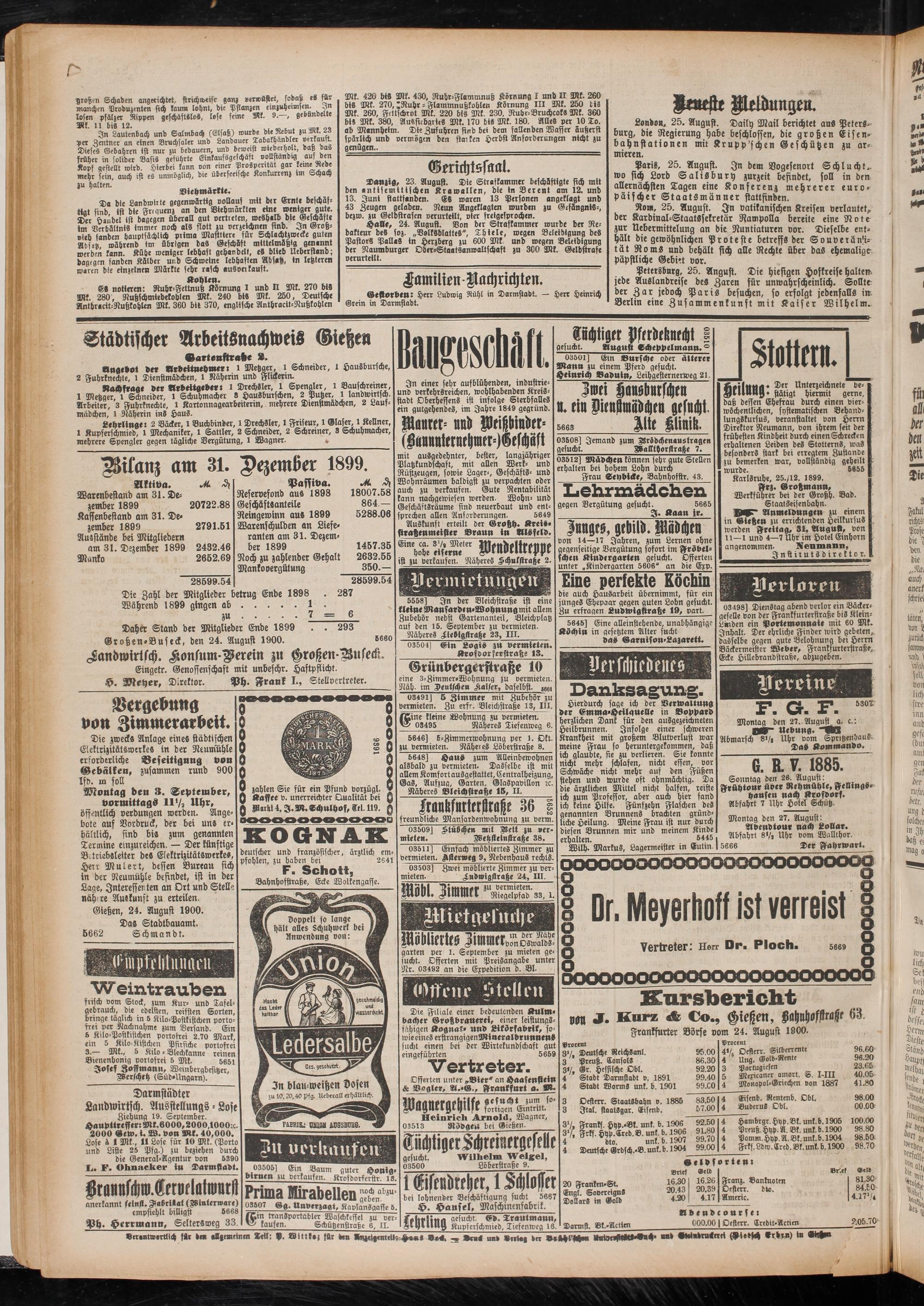 1WT* Anmeldungen zu einem in Gießen zu errichtenden Heilkursus werden Freitag, 31. August, von u—1 und 4—7 Uhr im Hotel Einhorn I angenommen- Neumann, _________Institutsdirektor.