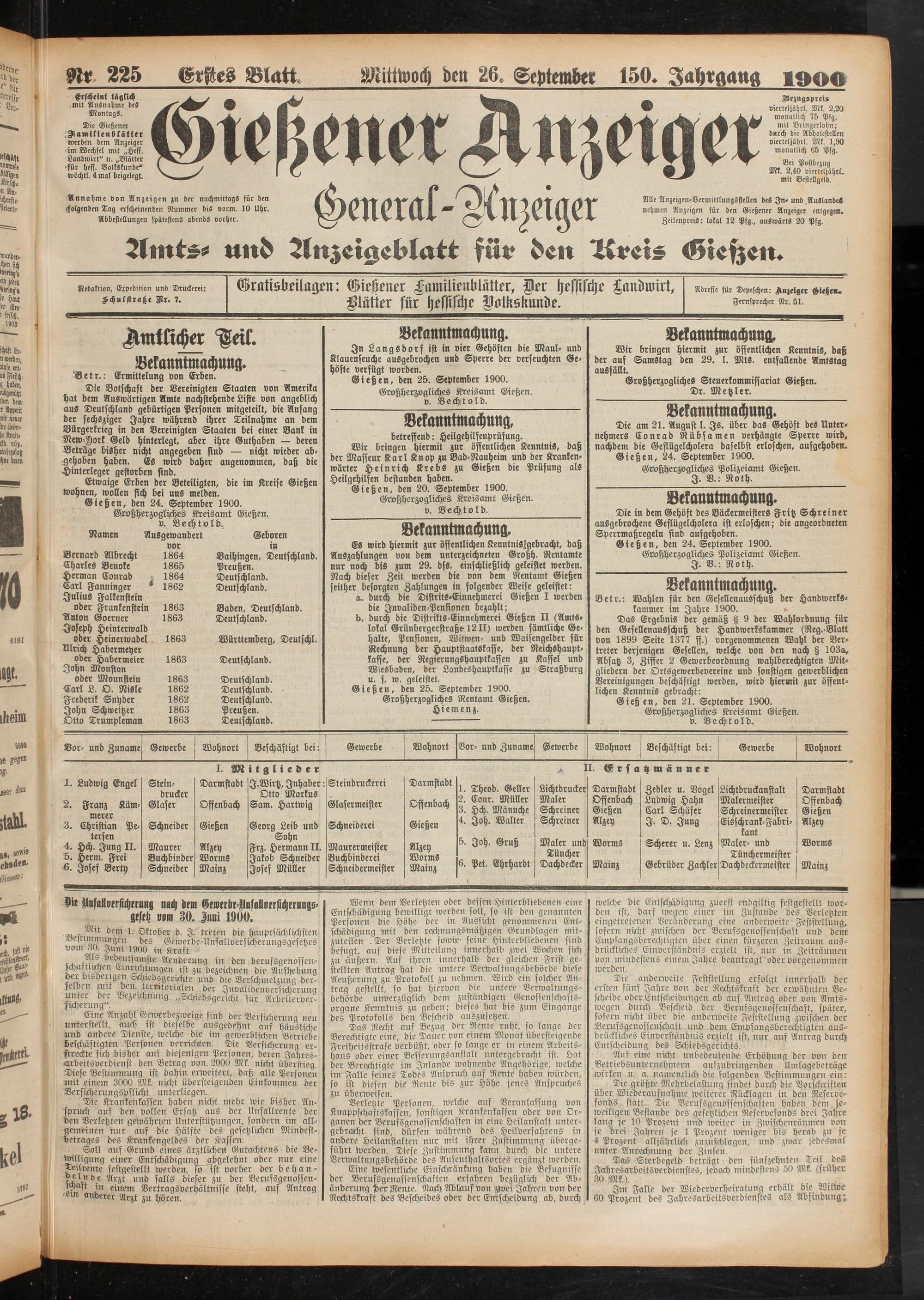 Gießen, den 25. September 1900. Großherzogliches Rentamt Gießen. Hiemenz.