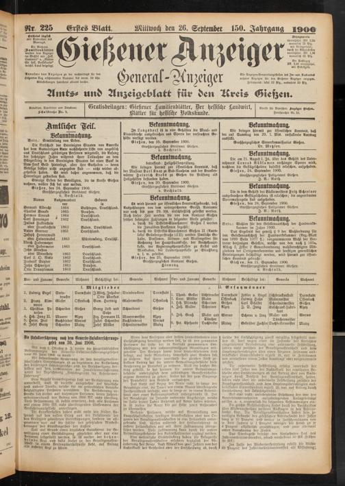 Rr 225 Erßes Blatt. Mittwoch de« 26. September ISO. Jahrgang »»»«