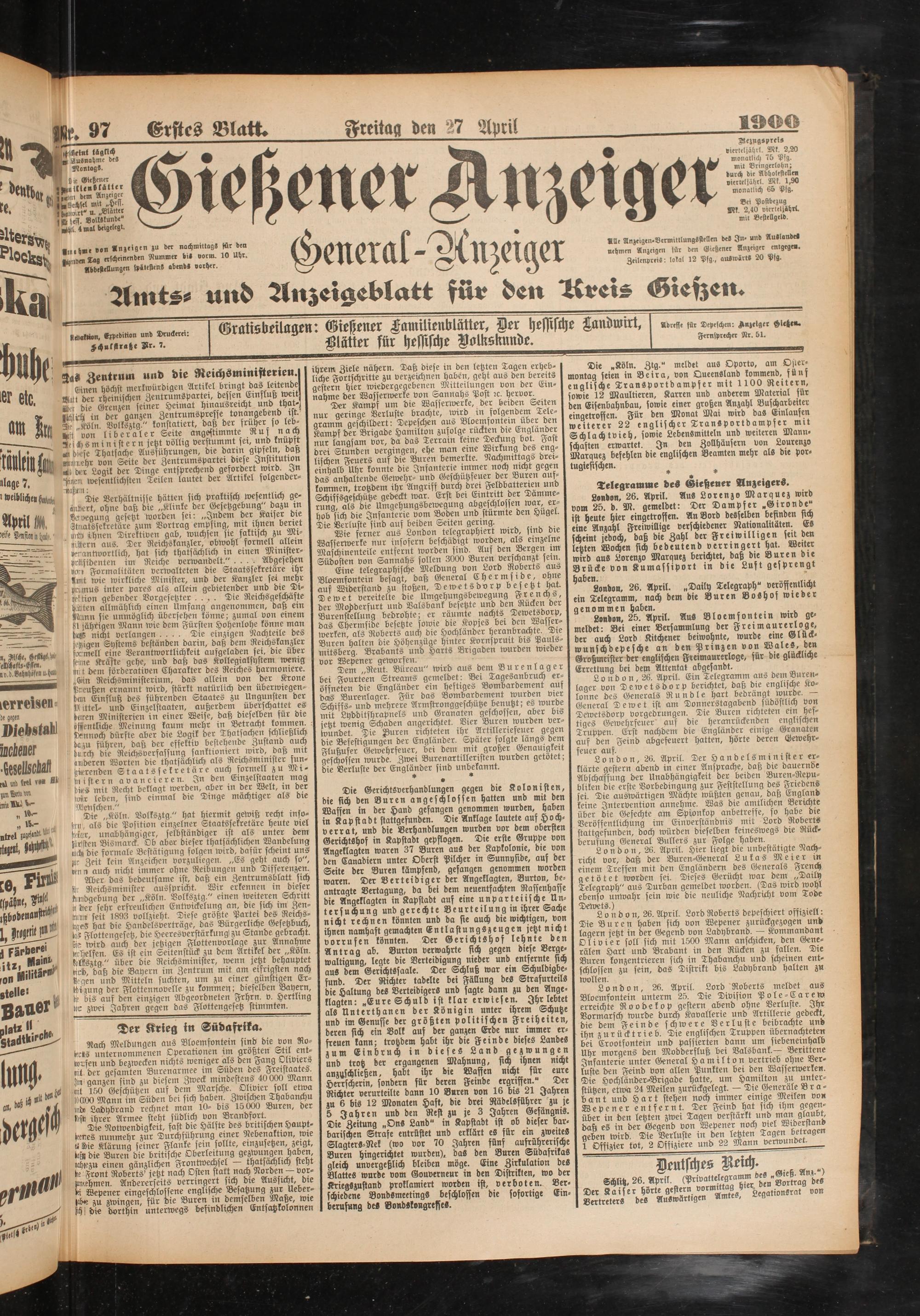 Loudon, 25. April. Aus Bloemfontein wird gemeldet: Bei einer Verfammlung der Freimaurerloge, der auch Lord Kitchener beiwohnte, wurde eme Glückwunschdepesche an den Prinzen von Wales, den Großmeister der englischen Freimaurerloge, für bie glückliche Errettung bei dem Attentat abgesandt.