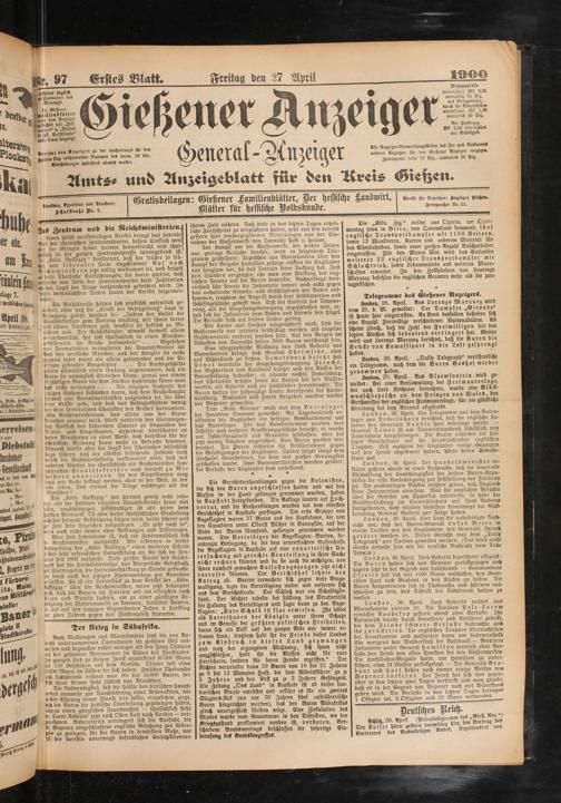 HUt Anzeigrn-VermittlungSstkllen des In- und Auslandes uthm.n Anzeigen für den Gictzener Anzeiger entgegen. ZeilenpreiS: loTal 12 Pfg., auswärts 20 Pfg.