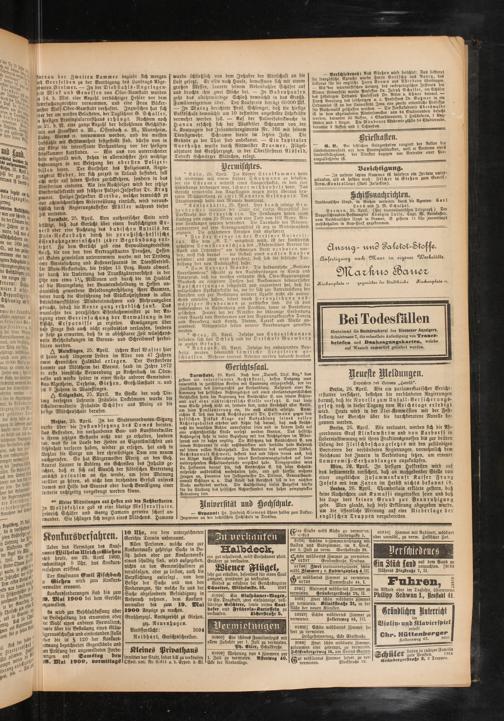 Wien, 26. April. In hiesigen Hofkreisen wird auf dvS bestimmteste versichert, daß an maßgebender Stelle von einer angeblichen Zusammenkunft Kaiser Franz Josefs mit dem Zaren im Herbst nichts bekannt ist, Bonbon, 26. April. Chamberlain erklärte gestern, daß keine Nachrichten aus Kumassi eingetroffen seien und daß die Lage dort keinen Grund zur Beunruhigung gebe. Man glaubt, daß diese Erklärung abgegeben wurde, um die öffentliche Meinung auf eine Niederlage der englischen Truppen vorzubereiten.