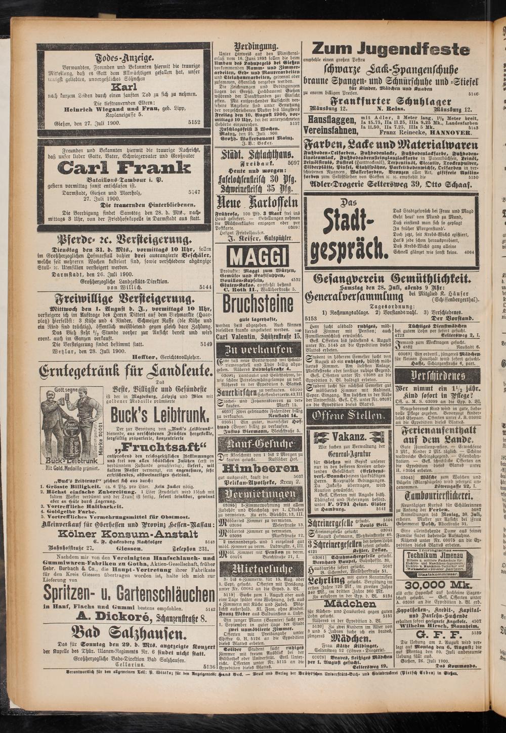 Die Zeichnungen und Bedingungen liegen bei Großh. Hochbauamt Gießen während der Dienststunden zur Einsicht offen. Mit entsprechender Aufschrift versehene Angebote sind unter Benutzung der vorgeschriebenen Muster bis längstens Freitag den 10. August 1900, vormittags 10 Uhr, bei der unterzeichneten " 5137