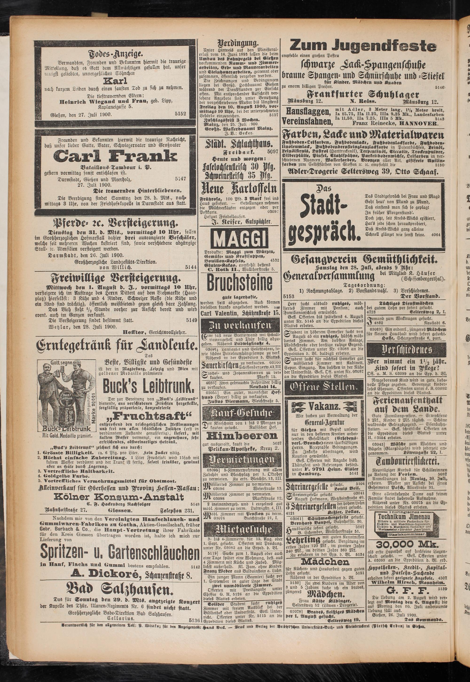 Die Beerdigung findet Samstag den 28. d. Mts., nachmittags 3 Uhr, von der Friedhofrkapelle in Darmstadt aus statt.