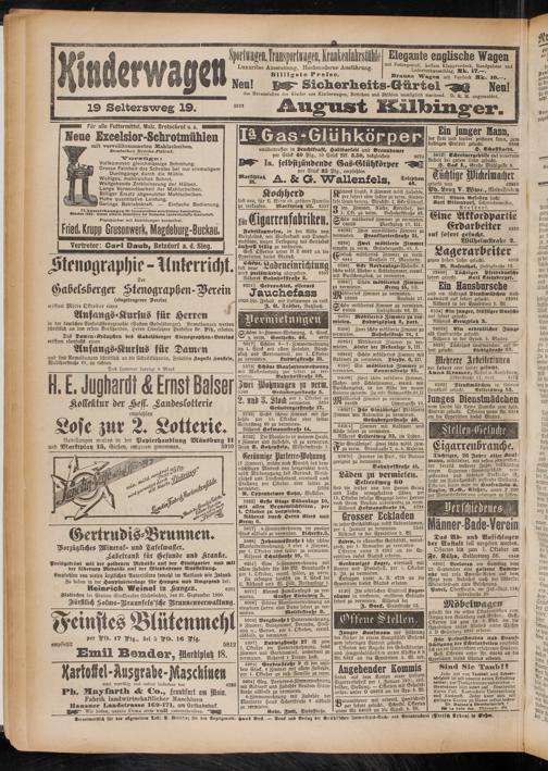 Zu erfragen dafelbst im 3. Stock bet L. Althaus und W. Hild, Nordanlage 1.
