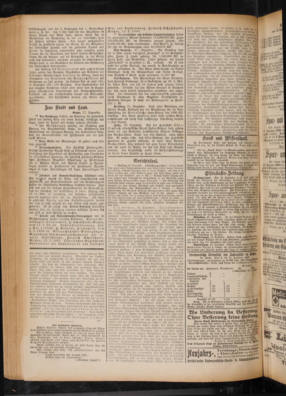 Friedberg, 21. Dezember. Nach einer Mitteilung von Seiten Großh. Kabinets hat der Großherzog für die Ausschmückung der Stadtkirche einen Betrag von 2000 Mk. bewilligt. Der Stadt Friedberg hätte keine größere Weihnachtsfreude als durch diese hochherzige Schenkung bereitet werden können.