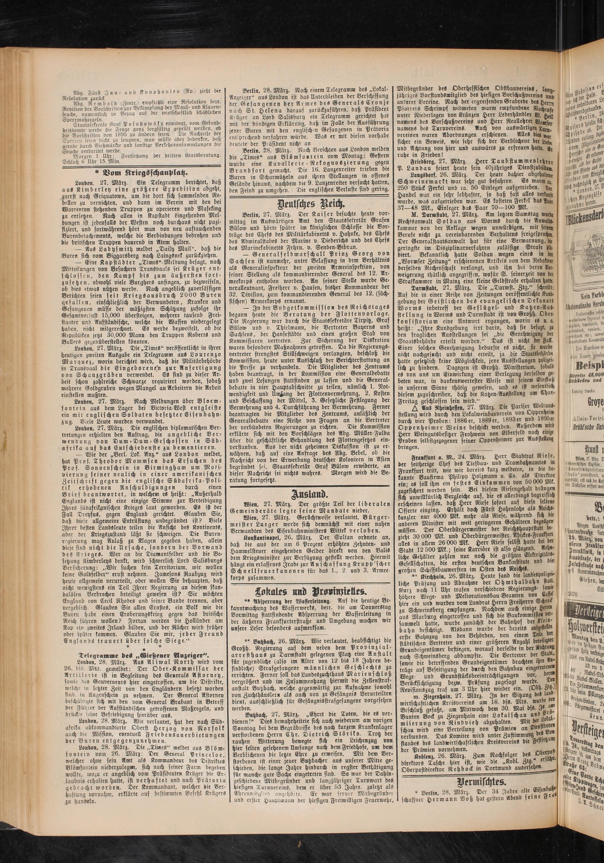 — Generalfeldmarschall Prinz Georg von Sachsen ist nunmehr, unter Belastung in dem Verhältnis als Generalinspekteur der zweiten Armeeinspektion, von einer Stellung als kommandierender General des 12. Armeekorps enthoben worden. An seiner Stelle wurde Generalleutnant, Freiherr v. Hausen, bisher Kommandeur der 32. Division, zum kommandierenden General des 12. (säch- ischen) Armeekorps ernannt.