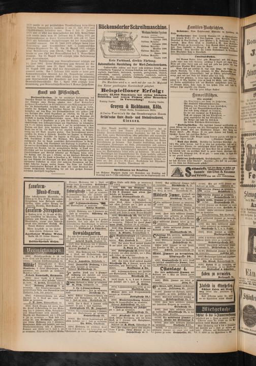des Gießener Anzeigers täglich (mit Ausnahme von Samstag und Sonntag) von 6—7 Uhr nachmittags. Eingang von der Kaplaneigaffe aus.