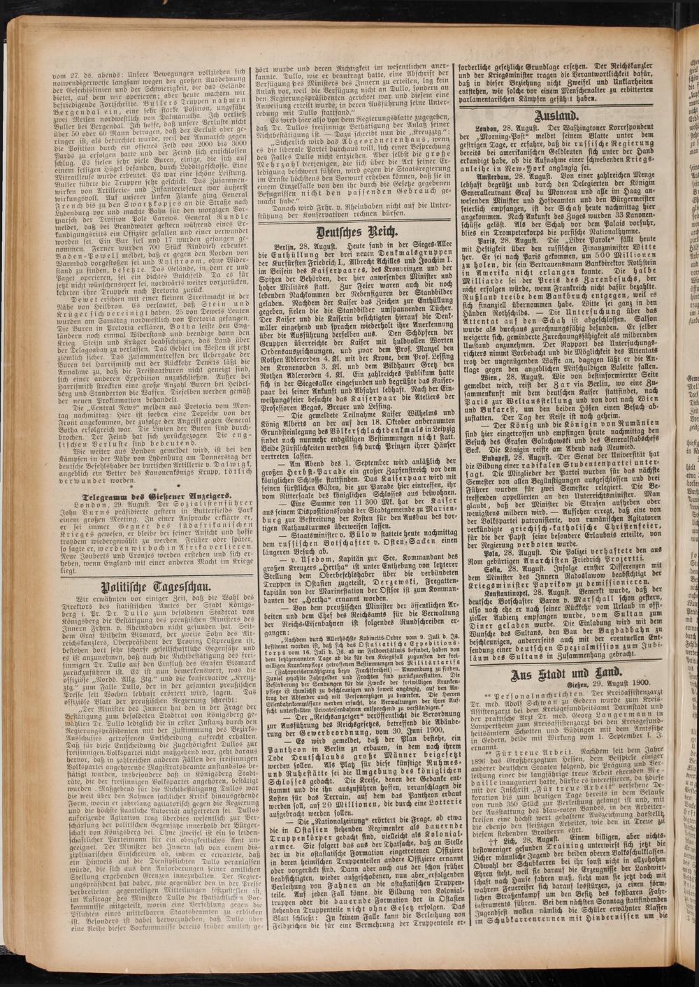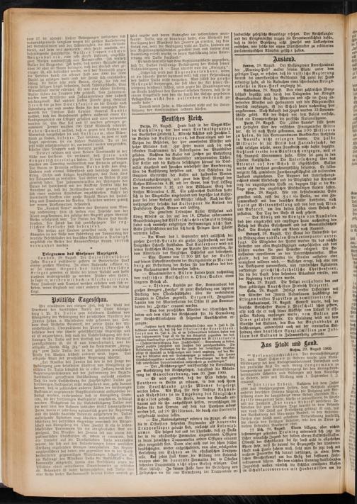 — Am Abend des 1. September wird anläßlich der großen Herbst-Parade ein großer Zapfenstreich vor dem königlichen Schlosse stattfinden. Das Kaiser paar wird mit I seinen fürstlichen Gästen, die zur Parade hier emtreffen, ihr vom Rittersaale des königlichen Schlosses aus beiwohnen.