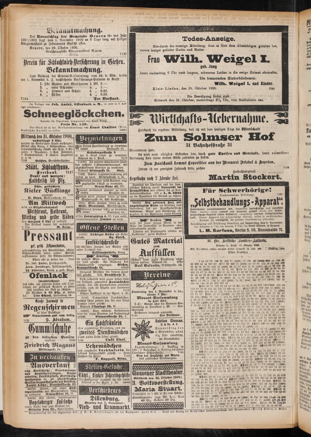 Die Beerdigung findet statt: Mittwoch den 81. Oktober, nachmittags Zl/z Uhr, vom Sterbehause aus.