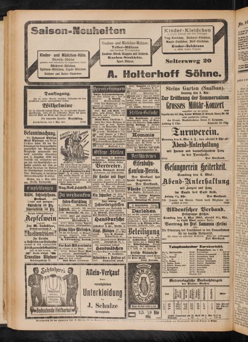 Samstag den 4. Mai 1901, abends 81 /t Uhr, im Cato Ebel (unterer Saal):