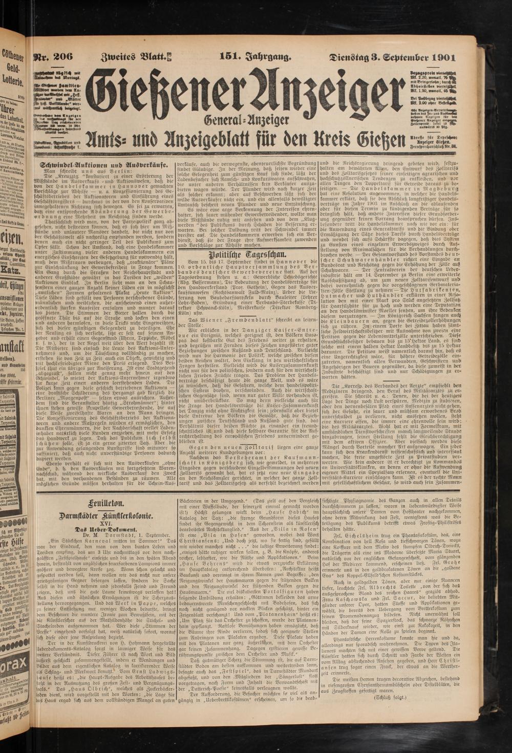 Dienstag 3. September 1901