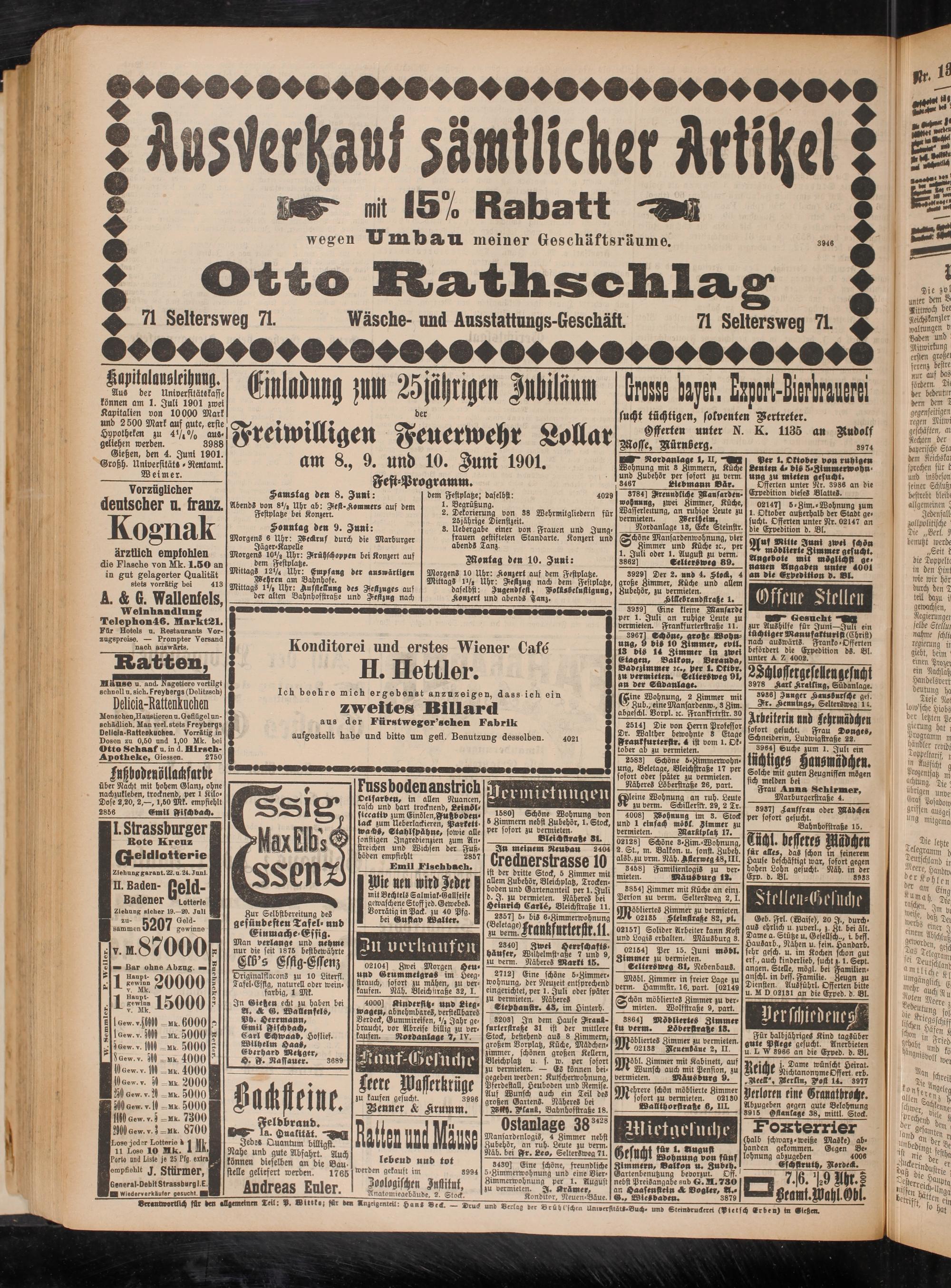 Hypotheken zu 4Vi% aus- geliehen werden. 3988 Gießen, den 4. Juni 1901. Großh. Universität- - Rentamt. ______Weimer._______