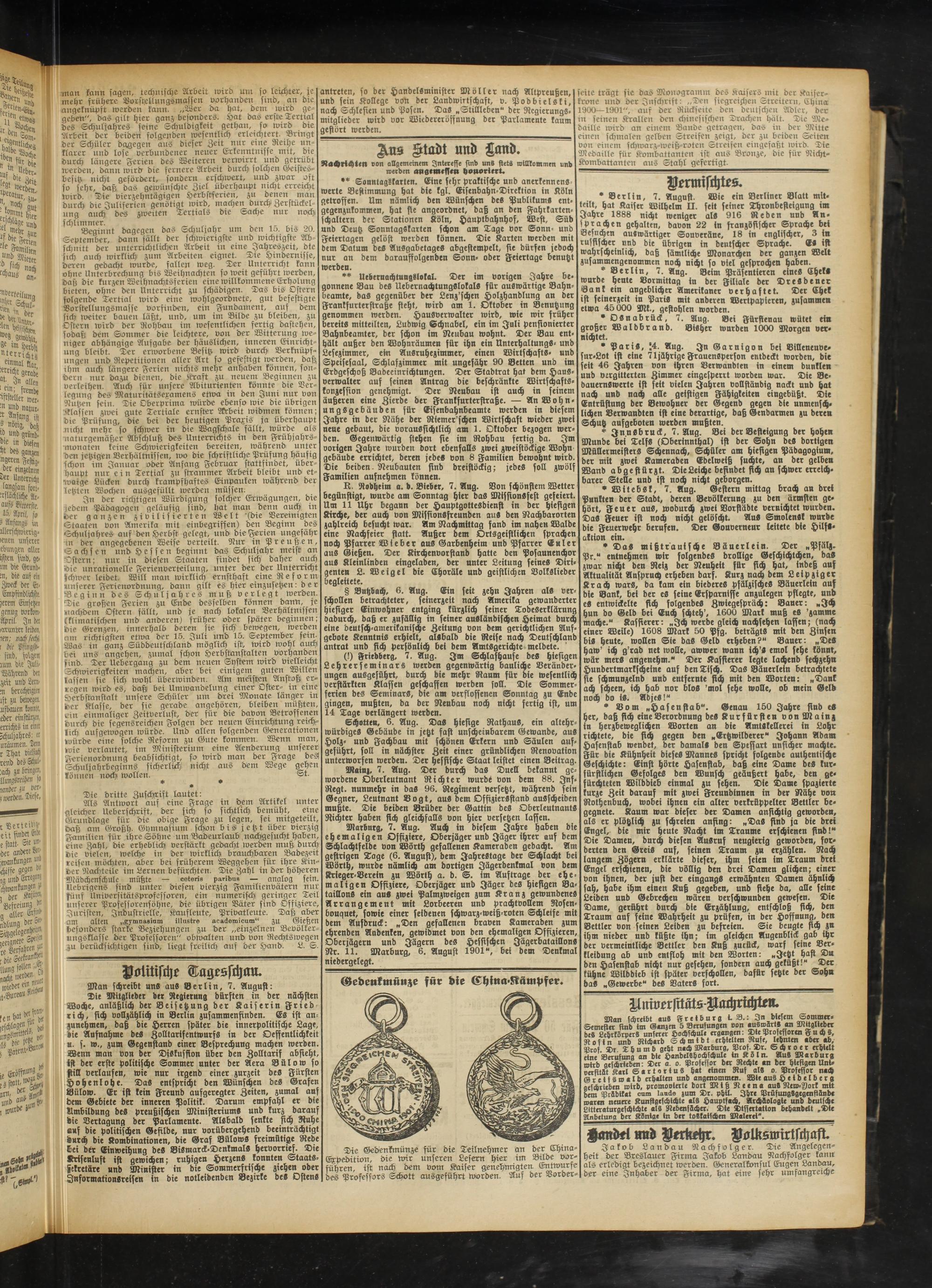 Als Antwort auf eine Frage in dem Artikel unter gleicher Ueberschrift, der sich so sichtlich bemüht, eine Grundlage für die obige Frage zu legen, sei mitgeteilt, daß am Großh. Gymnasium schon bis jetzt über vierzig Familien für ihre Söhne um Badeurlaub nachgesucht haben, eine Zahl, die erheblich verstärtt gedacht werden muß durch die vielen, welche in der wirklich brauchbaren Badezeit reisen möchten, aber bei früherem Weggehen für ihre Kinder Nachteile im Lernen befürchten. Die Zahl in der höheren Mädchenschule müßte — ceteris paribue — analog sein. Uebrigens sind unter diesen vierzig Familienvätern nur fünf Universitätsprofessoren, ein numerisch geringer Teil unserer Professorenföhne, die übrigen Väter sind Offiziere, Juristen, Industrielle, Kaufleute, Privatleute. Daß aber am alten „gymnasium illustre academicum“ zu Gießen besonders starke Beziehungen zu der „einzelnen Bevölkerungsklasse der Professoren" obwalten und von Rechtswegen 311 berücksichtigen sind, liegt freilich auf der Hand. L. S.