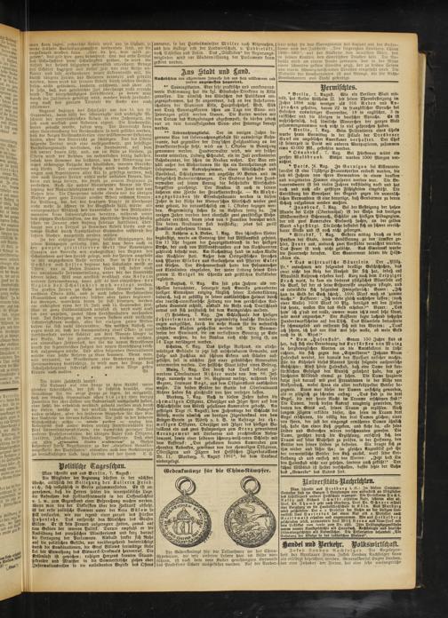 Die Gedenkmünze für die Teilnehmer an der China- Expedition, die wir unseren Lesern hier im Bilde vorführen, ist nach dem vom Kaiser genehmigten. Entwürfe des Professors Schott ausgeführt worden. Auf der Vorder