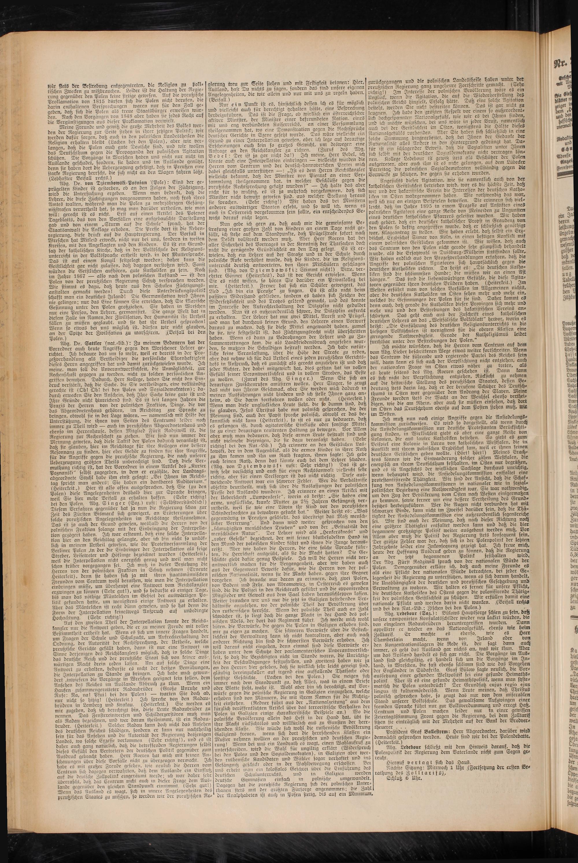 Meine Freunde und gewiß Die große Mehrheit De3 Volkes werden der Regierung zur Seite stehen in ihrer jetzigen Politik; wir werden dafür sorgen, daß auch in den polnischen Laiidesthenen Die Religion erhalten bleibt (Lachen bei Den Polen), aber wir verlangen, daß die Polen auch gute Deutsche sind, und wir wollen das Deutschthum gegen die Propaganda der polnischen Agitation schützen. Die Vorgänge in Wreschen haben uns nicht nur nicht im Auslande geschadet, sondern, sie haben uns im Auslande genutzt, denn sie haben Dort Die Ueberzeugung gefestigt, daß in Preußen eine starke Regierung herrscht, die sich nicht an den Wagen fahren laßt. (Lebhafter Beifall rechts.) .