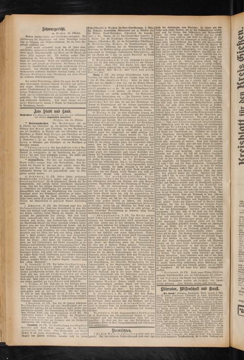 fc. Frankfurt a. M., 10. Okt. Auf dem Bockenheimer Friedhöfe hatte heute morgen ein Pfarrer zuerst einen jungen Arbeiter und dann einen Invaliden von 1870/71 zu beerdigen. Dabei passierte ihm das Malheur, das Konzept zu den Leichenreden zu verwechseln, und er pries in längerer Rede die hervorragenden Verdienste des jungen Arbeiters um die Wiederherstellung des deutschen Reiches.