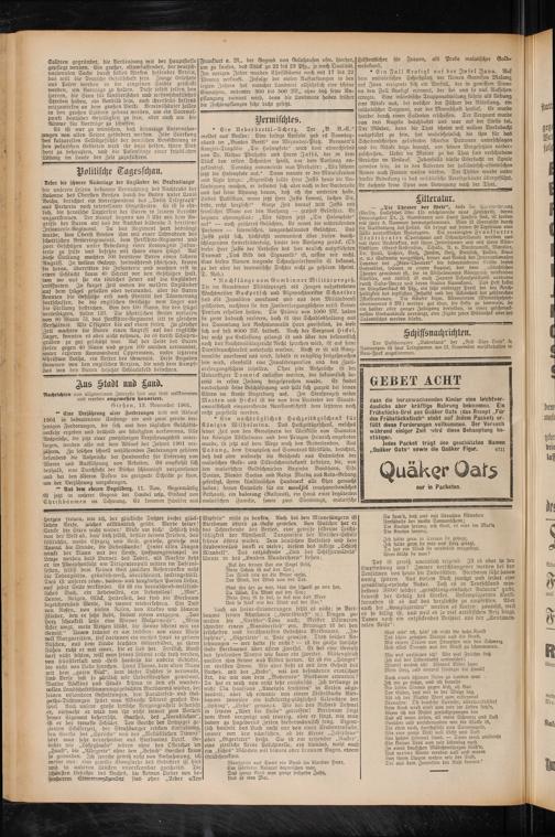 dass die heranwachsenden Kinder eine leichtverdauliche aber kräftige Nahrung bekommen. Ein Frühstücks-Brei aus Quäker Oats (das Rscept „Für den Frühstückstisch“ steht auf Jedem Packet) erfüllt diese Forderungen vollkommen. Der Versuch während einiger Zeit wird diese Behauptung bestätigen.
